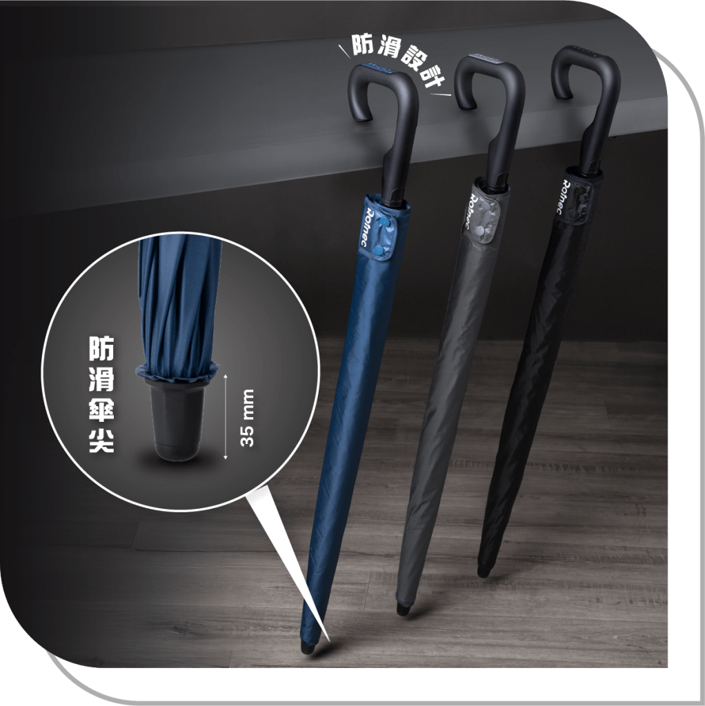 手柄及傘頭均設有防滑軟膠,掛於桌邊傘頭著地,放置穩定性滿分!