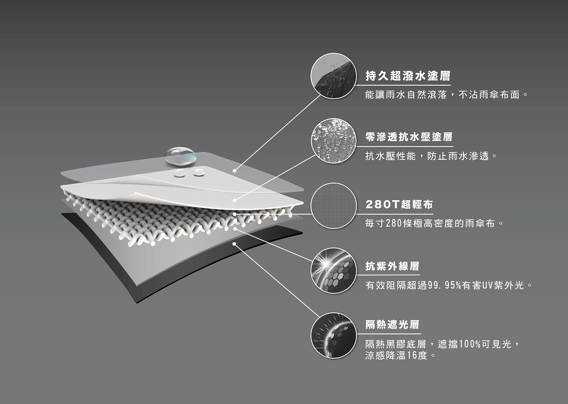 防曝指數: UPF2000 (隔絕 99.95% 紫外光)